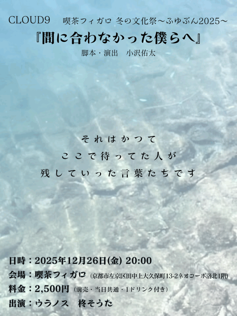 CLOUD9『間に合わなかった僕らへ』(喫茶フィガロ 冬の文化祭〜ふゆぶん2025〜)のチケット予約を開始しました!